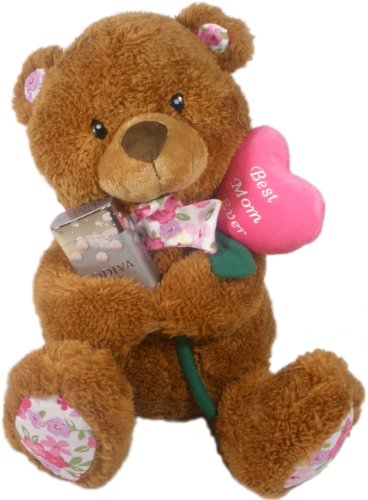 - Express your sentiments with this cute teddy bear (13" high, brown or beige)with the inscription "Best Mom Ever" and a tin of Godiva pearls.